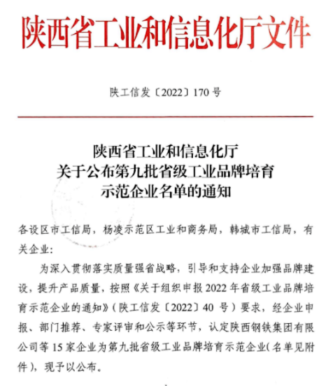 近日,陕西省工业和信息化厅公布了第九批省级工业品牌培育示范企业名单,6686体育官网股份成功入选并荣获“省级工业品牌培育示范企业”称号。