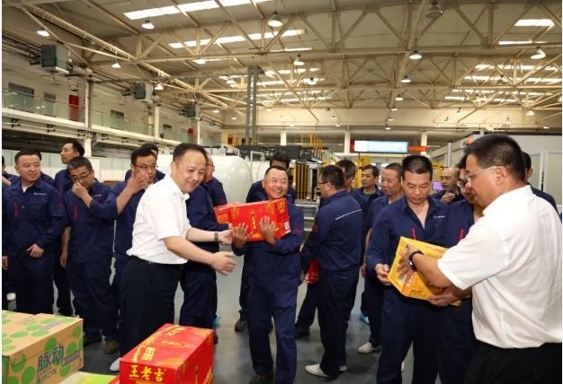 靳海斌一行来公司慰问职工“送清凉”,带来了省国防工会的关怀和厚爱,一声声亲切贴心的问候,一句句热情洋溢的话语,一份份贴心的清凉用品,让在场的一线职工深切感受到上级工会组织的关心与问候,让职工们感受到了“娘家人”的温暖。