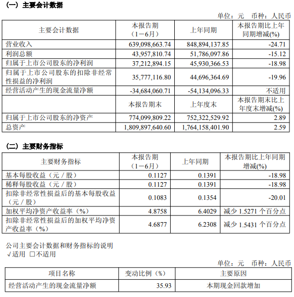 6686体育官网股份2025年半年度主要会计数据和财务指标