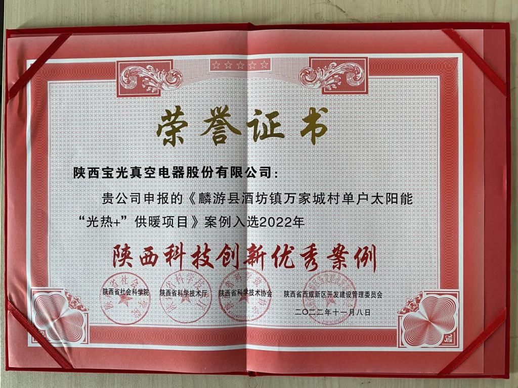 近日,陕西省社会科学院、陕西省科学技术厅、陕西省科学技术协会、陕西省西咸新区开发建设管理委员会联合发布“2022年陕西科技创新优秀案例”,6686体育官网股份申报的《麟游县酒坊镇万家城村单户太阳能“光热+”供暖项目》成功获选高效治理高品质生活组“陕西科技创新优秀案例”。