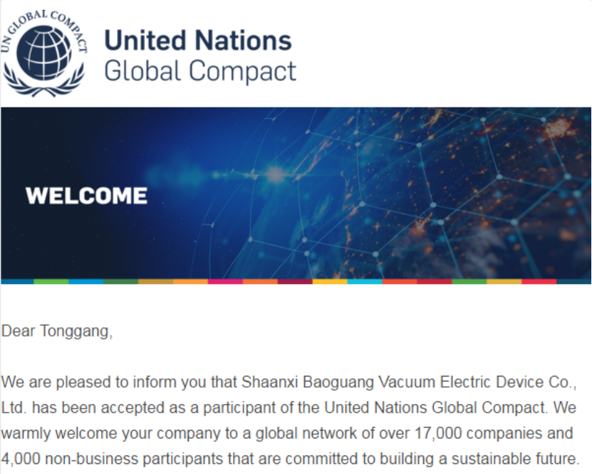 В последние дни Баогуан официально одобрила свое членство в глобальном договоре ООН (UNGC), что знаменует собой твердый шаг вперед в улучшении имиджа своего международного бренда и углублении практики корпоративной социальной ответственности.